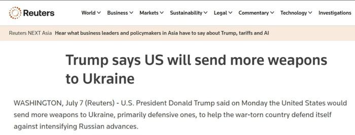 美国总统特朗普7日表示,美国将向乌克兰输送更多武器。此番表态距离美国宣布暂停对乌部分军事援助仅隔数日。
